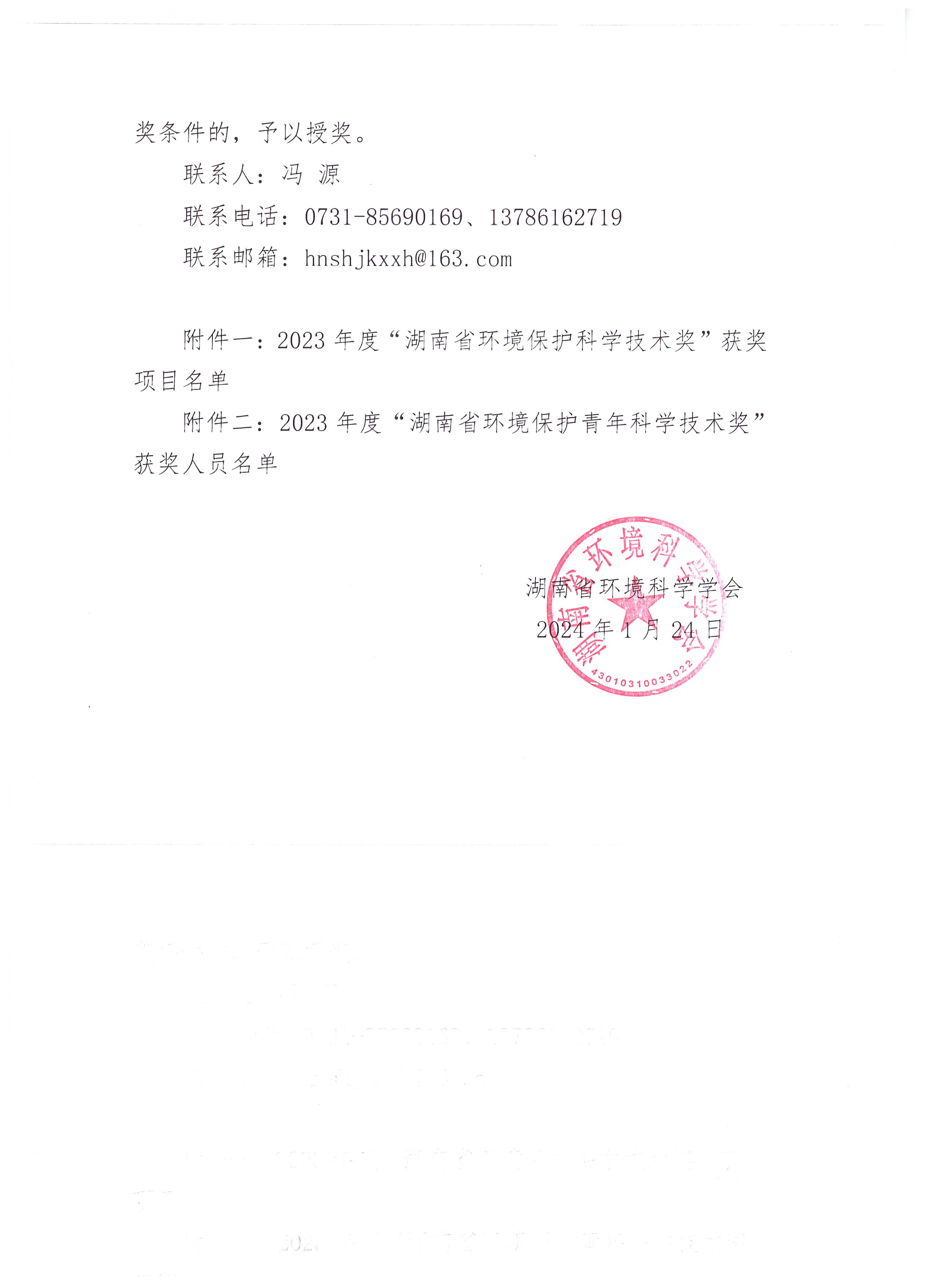 2023年度“湖南省环境保护青年科学技术奖”获奖人员公示